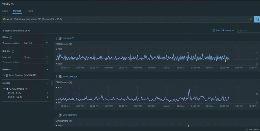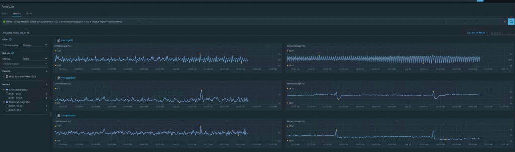 This capability is very powerful and useful in scenarios where you are trying to dig data out of large number of metrics and objects and want to get it in quick time. you can use numeric and string operators to create your custom queries, also you can use the additional filters to optimize your search results. This feature can help you a lot in your troubleshooting exercises to identify specific issues in the environment related to resource utilization/ performance and so on.
